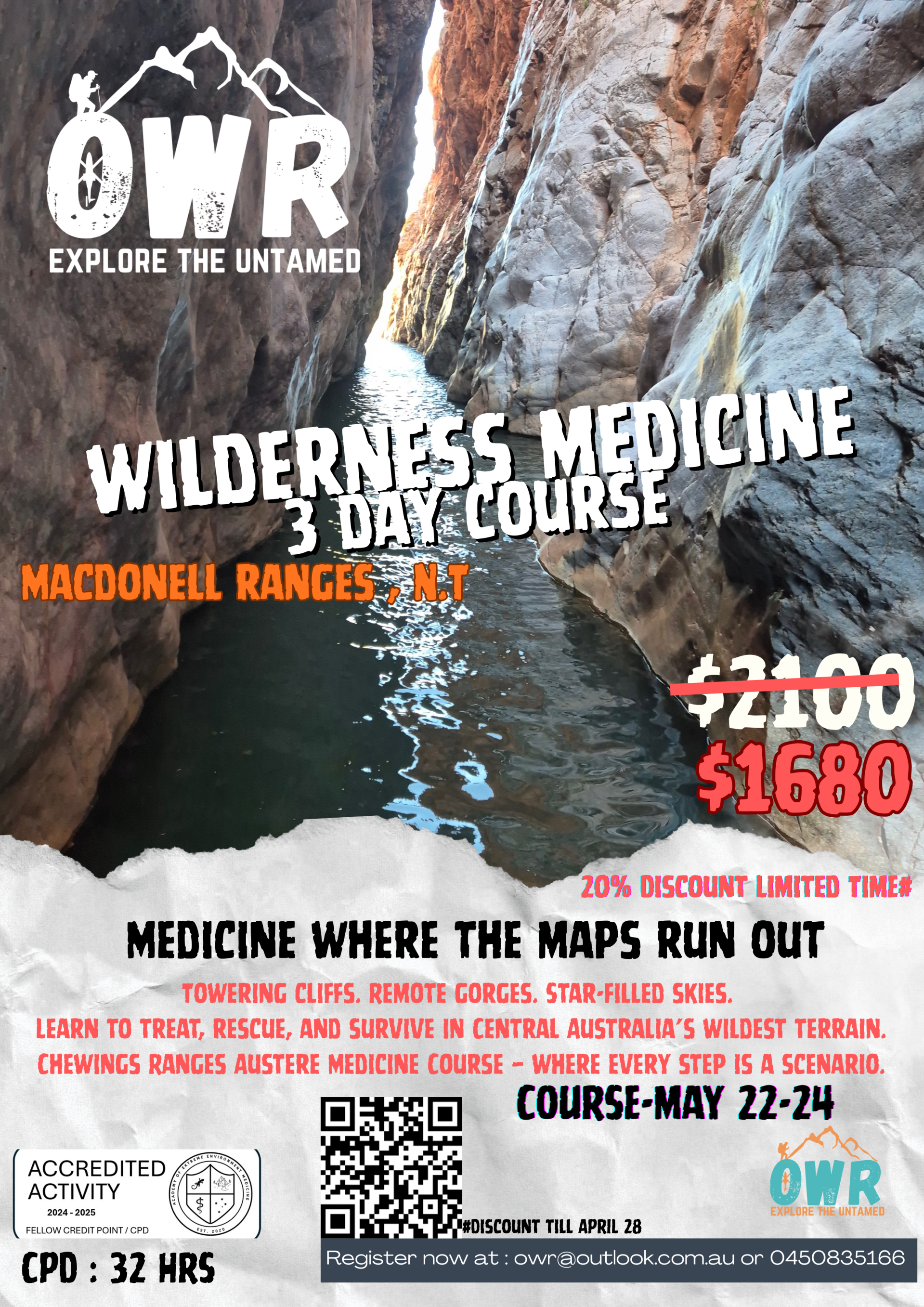 This 3-day immersive field course is designed for clinicians operating in remote, wilderness, and resource-limited settings, with a focus on practical skills, environmental challenges, and critical decision-making under pressure. Set deep in the rugged Larapinta Trail region of Central Australia, the course blends theory with hands-on scenarios in canyons, gorges, rivers, and ridgelines—where evacuation is delayed, resources are limited, and clinical judgement matters most.